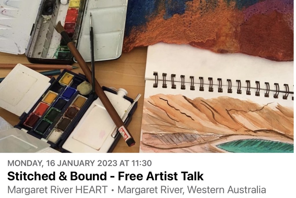 The stitched and bound exhibition will open on Tuesday 31/1/23 until Saturday 25/2/23 at the Katanning Public Art Gallery, 16 Austral Terrace, Katanning WA 6317.