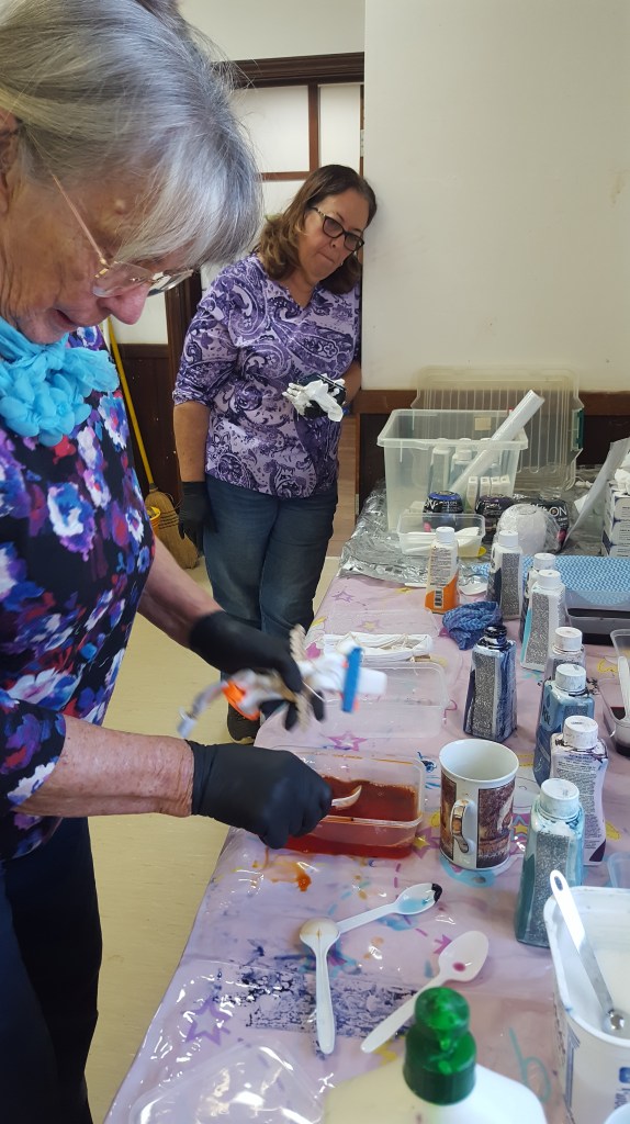 The second workshop at Carnarvon was in the Jubilee Hall and everyone spent a lovely messy day microwave dyeing. As well as the local crafters, there were some visitors who were just passing through and saw the ads and signed up!