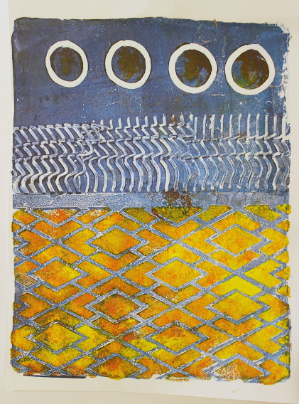 Helen plans to use her time in the studios to make some Gelli printed fabrics combined with lino cuts and other block printing and stencils.