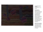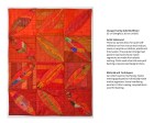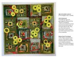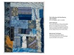 ‘My husband, Jack, and many of our friends are part of the lycra brigade that cycle round the streets at an ungodly time of day. Every weekend there are tales of ‘men down’ in the peloton. Fatalities occur and you will see ghost bikes installed along the roadside memorialising where someone has died. The cause of these accidents can be mechanical failure and incidents within the peloton, but alarming can also be the result of cars being careless and some deliberately targeting vulnerable cyclists because they feel they shouldn’t be on the road. When I saw this Reece Scanlon piece of fabric when I was at AQC in Melbourne, I thought I had to do a piece based on it. So in the foreground of the peaceful scene printed on the linen, I added the cycle wheels and car tyre marks. The white wheel is crumpled to signify a fatal accident. If you look carefully, you will see that crashed bikes and words associated with cycling quilted into the finished piece’
